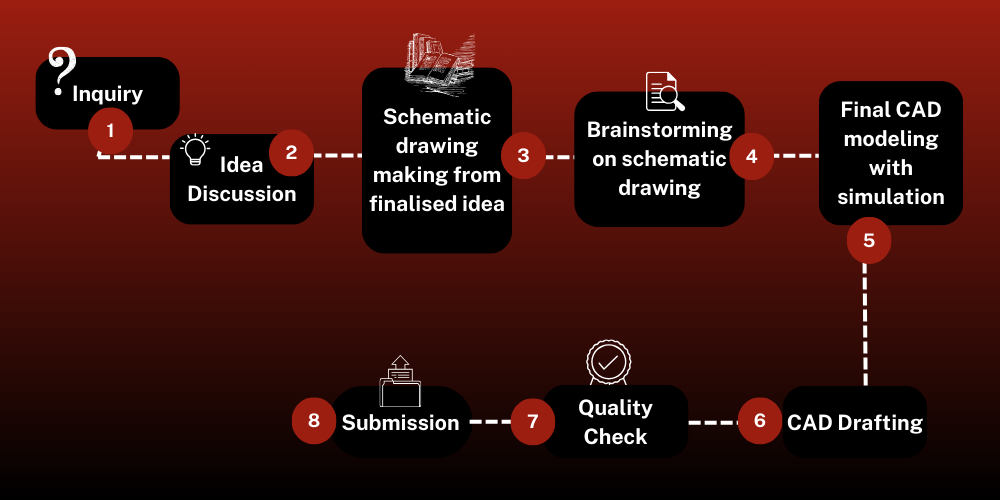 - Not only modeling and drafting, but also our team helps to validate component by analysing the interrelation and tolerance level using 3D modeling and also 2D drawings helps you to understand the final output.